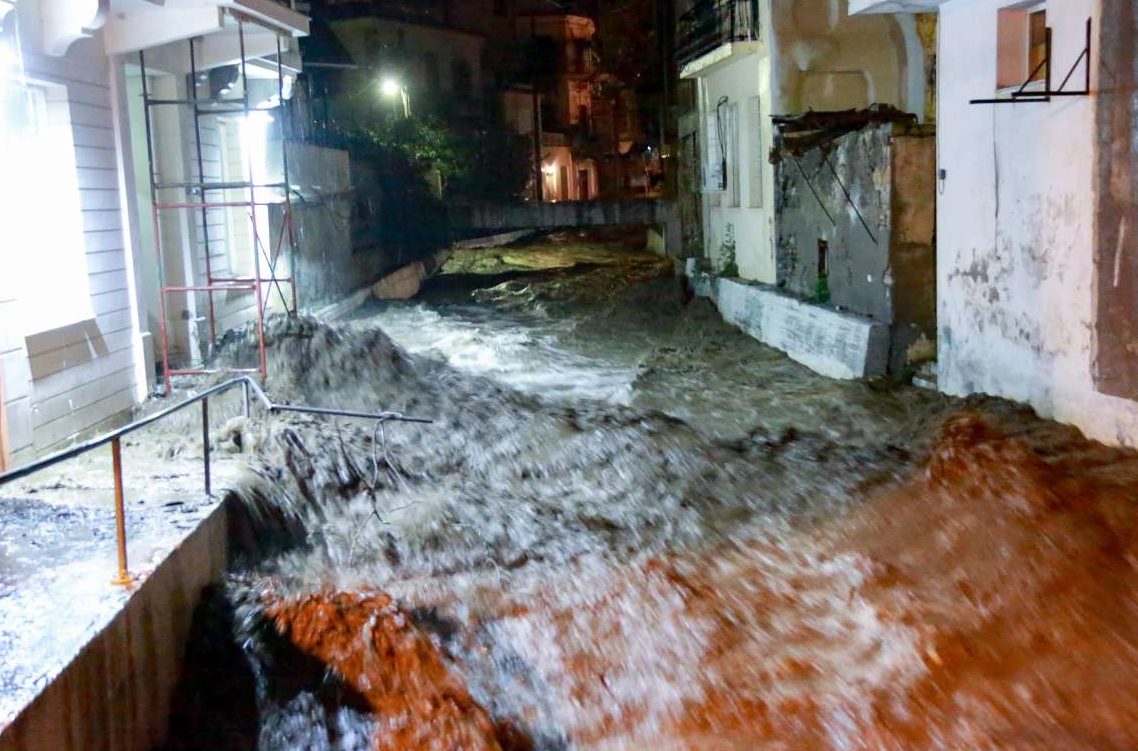 Μέσα στην πόλη της Μυτιλήνης πολλοί δρόμοι έχουν μετατραπεί σε λίμνες.