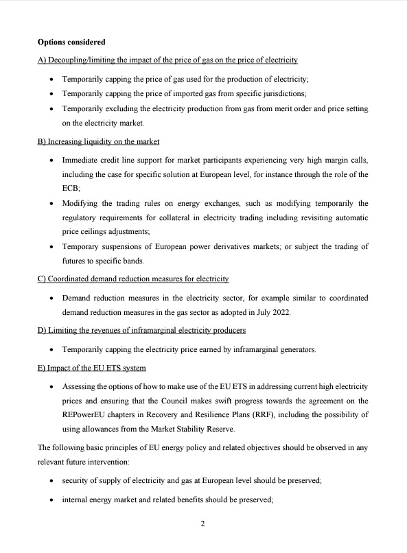Η τσεχική προεδρία του Συμβουλίου της ΕΕ προειδοποίησε στο εν λόγω έγγραφο ότι η εισβολή της Ρωσίας στην Ουκρανία, οι συνεχιζόμενες περικοπές στον ενεργειακό εφοδιασμό από την πλευρά της Μόσχας και η πρόσφατη, «πλήρης και επ’ αόριστον διακοπή» του αγωγού Nord Stream «τροφοδοτούν την άνοδο του πληθωρισμού και έχουν σοβαρές επιπτώσεις σε όλες τις επιχειρήσεις και τους καταναλωτές».