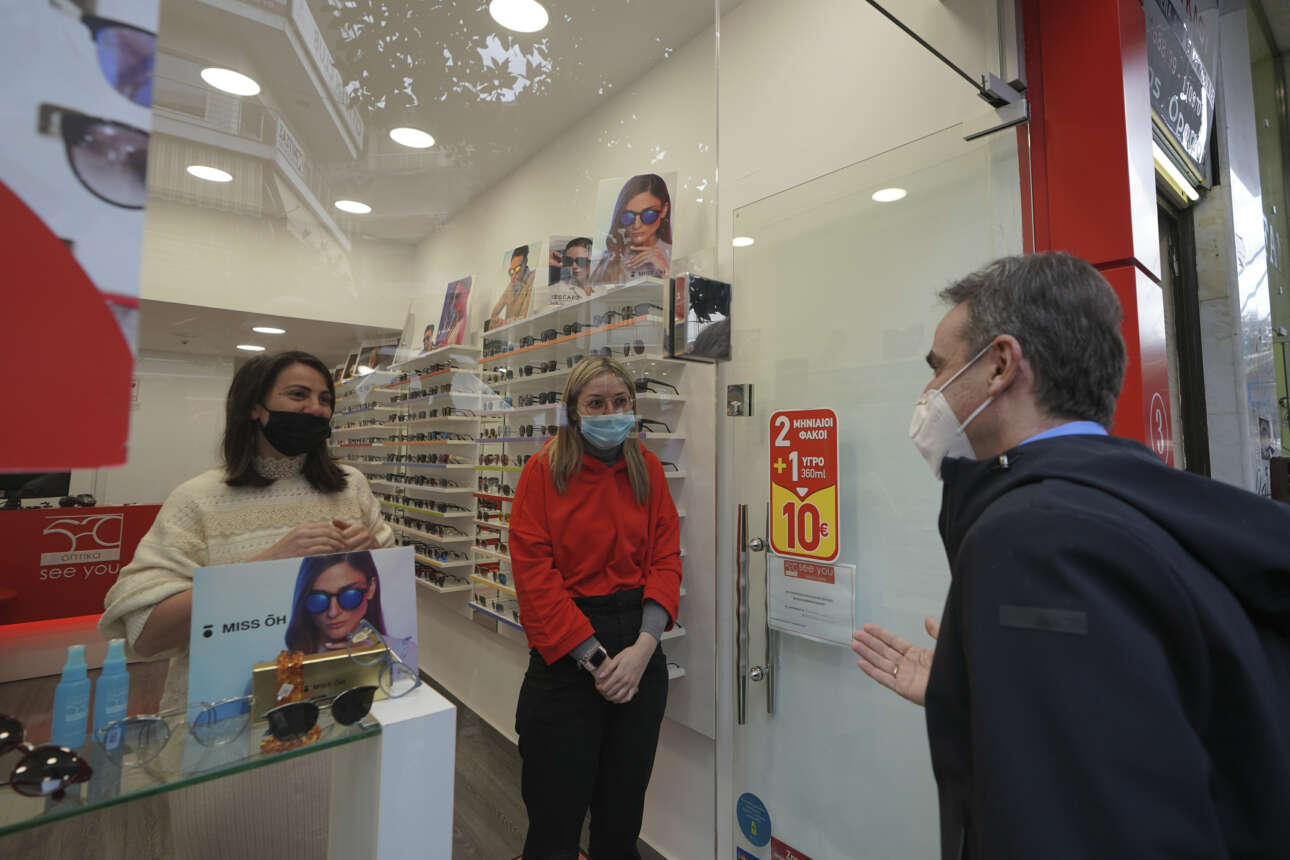 Ο Κυριάκος Μητσοτάκης είχε, επίσης, την ευκαιρία να συνομιλήσει με πολλούς καταστηματάρχες σε μικρά μαγαζιά της πόλης.