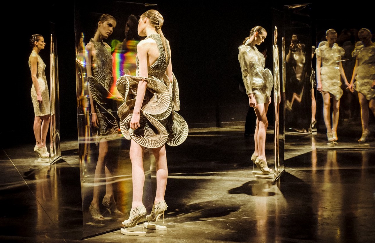 Αντίθετα από τους προηγούμενους, η φαντασία της Ολλανδής Iris Van Herpen δεν είναι παγιδευμένη στο παρελθόν. Το στιλ της διαμορφώνεται από την αναζήτηση μελλοντικών μορφών και τεχνικών, όπως οι 3D εκτυπώσεις, οι κοπές με λέιζερ, και η θερμοκόλληση. Και αυτή τη φορά, η έμπνευσή της γεφυρώνει το έργο του ισπανού νευροανατόμου Ραμόν Υ Καζάλ με την εξερεύνηση της ταξινομικής κατηγορίας των υδρόζωων, που ζουν στα βάθη της θάλασσας.