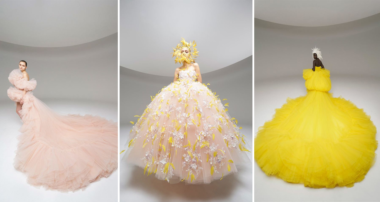 Στην επίδειξη του οίκου Giambattista Valli στο μουσείο Jeu de Paume, παρουσιάστηκαν περισσότερα από 30 μοντέλα, φορέματα φυσαλίδες από μεταξωτό ταφτά με πέταλα από οργάντζα, τουαλέτες χορού με σούρες, φρίλια και ουρά με μέτρα από τούλι, αλλά και ένα μεταξωτό καφτάνι στο χρώμα του λάιμ κεντημένο με κρύσταλλα.