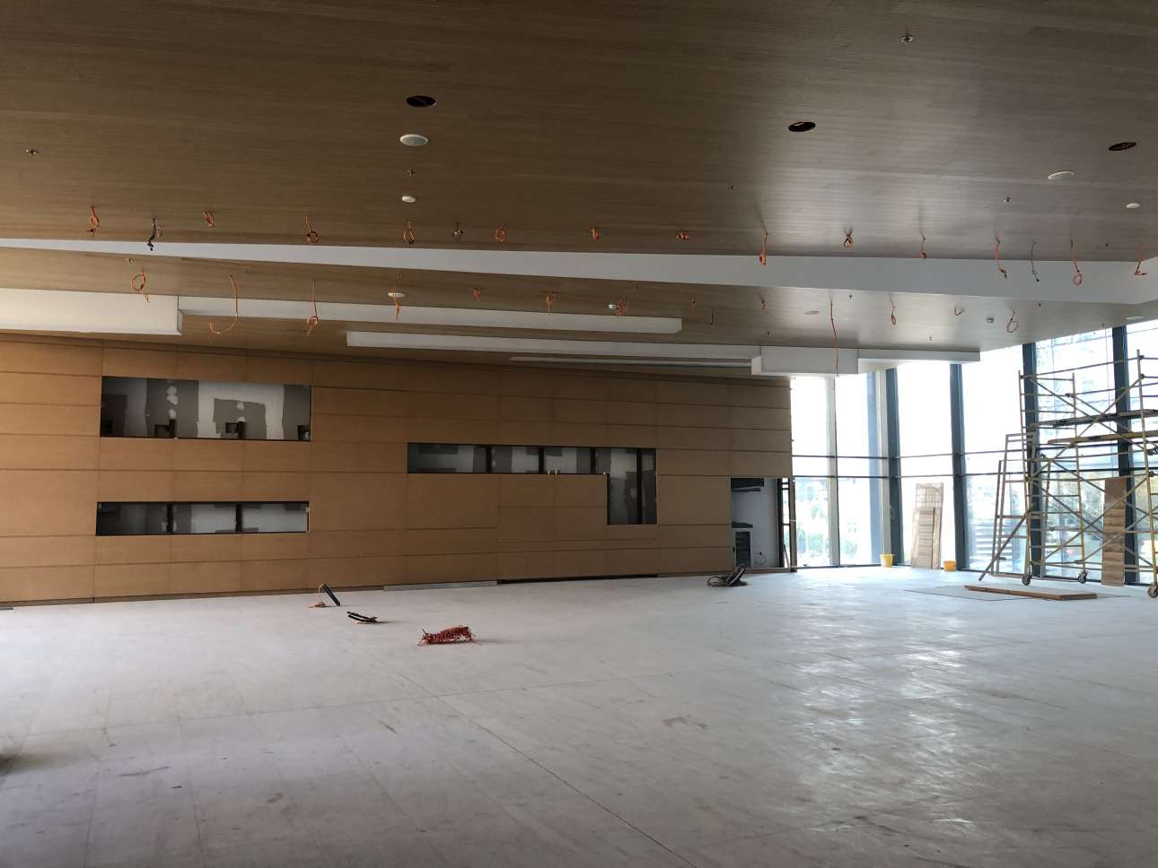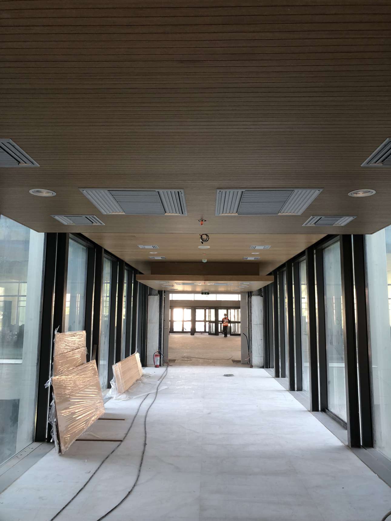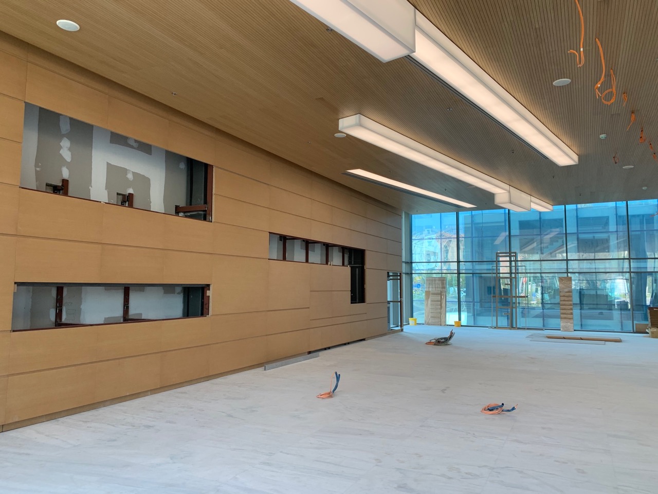 Ήδη, στο κεντρικό φουαγιέ, εκτός από τις ψευδοροφές έχουν τοποθετηθεί και οι τελικές ξύλινες επενδύσεις. Στους ορόφους έχουν τοποθετηθεί τα ξύλινα δάπεδα, όπως και το μεγαλύτερο μέρος των ψευδοροφών.