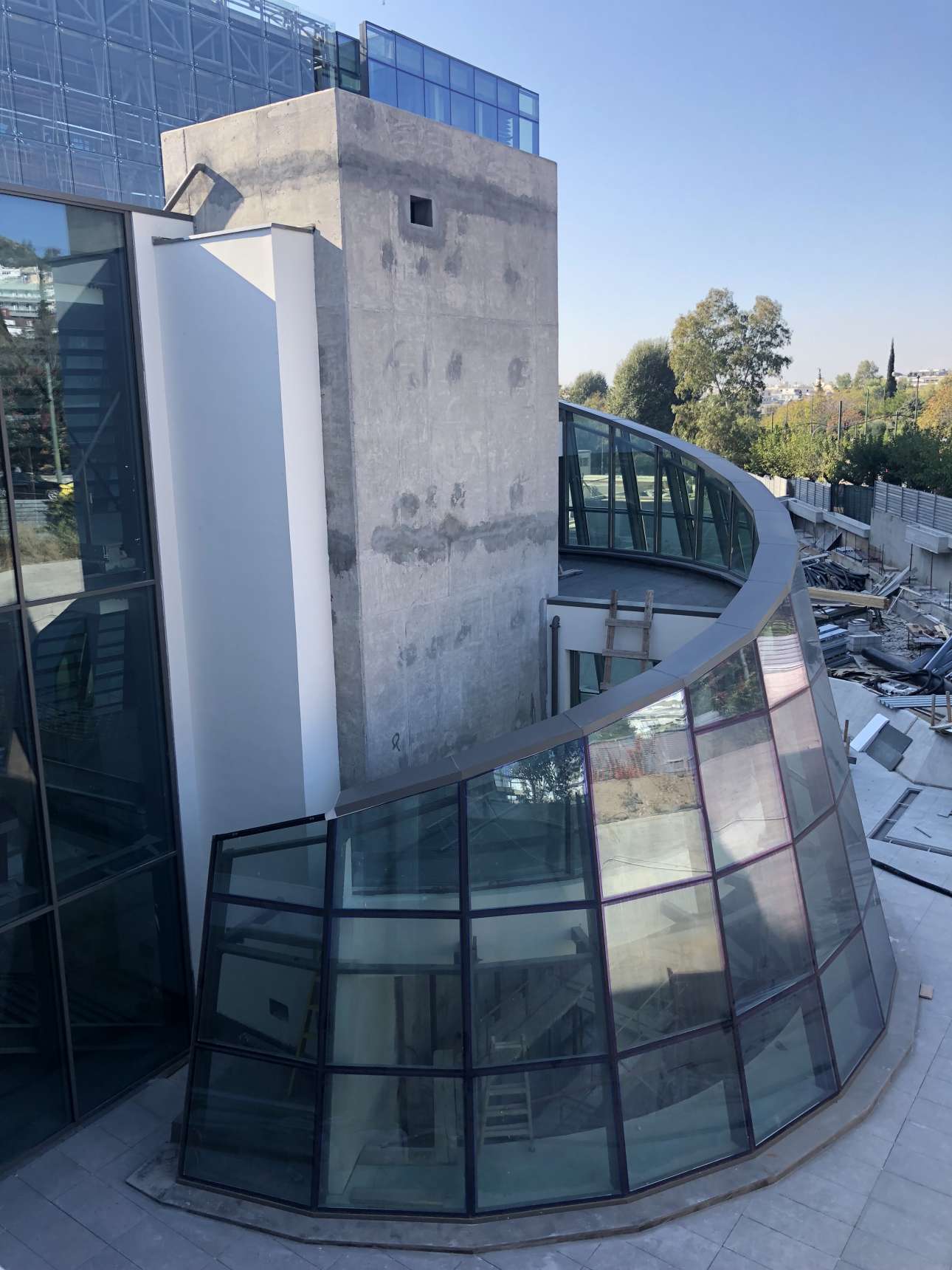 Στον χώρο του αμφιθεάτρου, όπου έχουν ολοκληρωθεί οι ξύλινες επενδύσεις και ο μηχανολογικός εξοπλισμός, αναμένεται η τοποθέτηση των καθισμάτων, ώστε ο χώρος να αποκτήσει την τελική του μορφή. Εντός χρονοδιαγράμματος βρίσκονται και οι εργασίες στον χώρο των περιοδικών εκθέσεων.