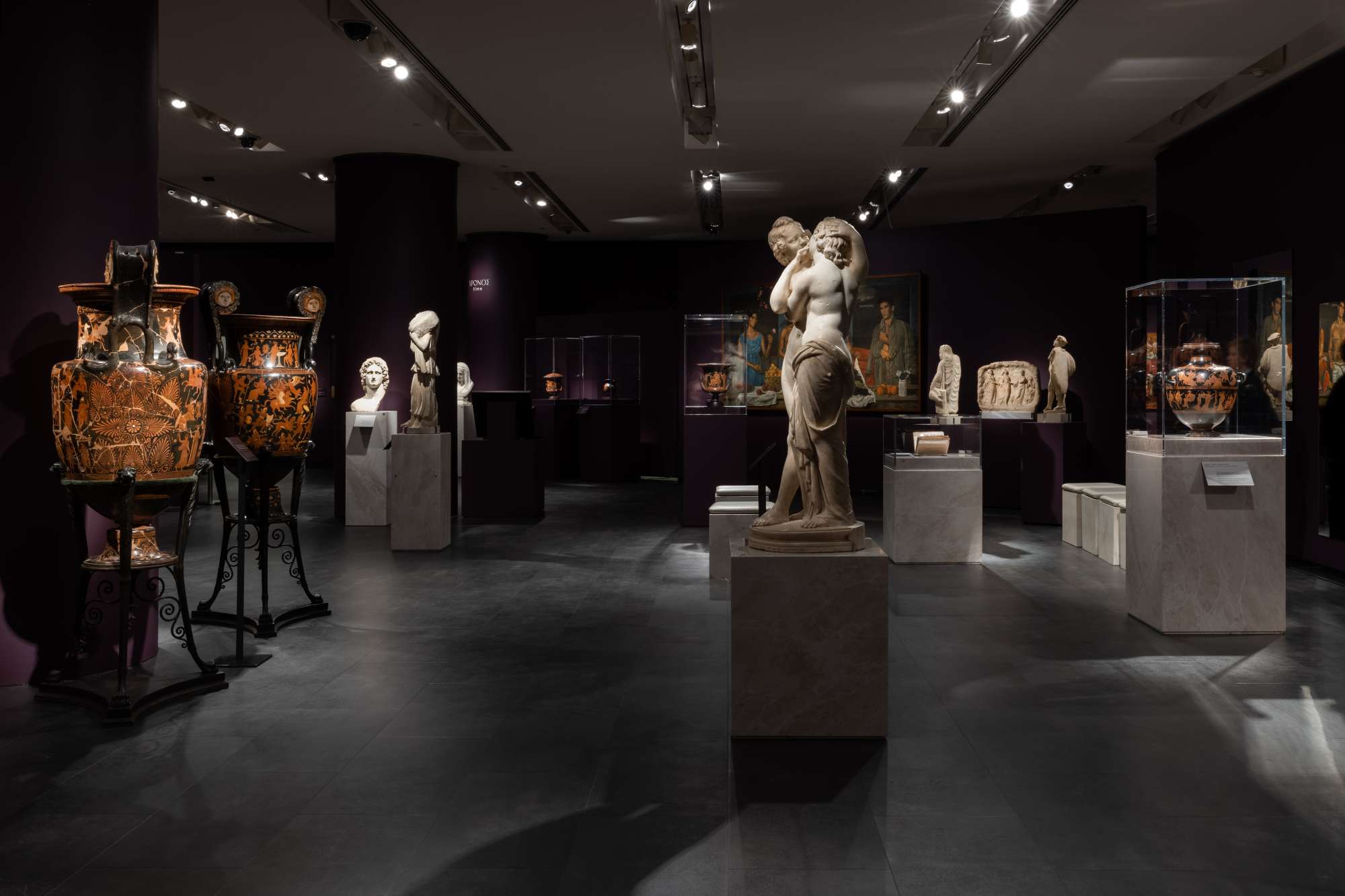 Η έκθεση υποδέχεται τον επισκέπτη με τον «Κρόνο-Χρόνο»: τον «Κρόνο που καταβροχθίζει τον γιο του», του περίφημου φλαμανδού ζωγράφου Πέτερ Πολ Ρούμπενς, δάνειο του Μουσείου Πράδο της Μαδρίτης -μία σκηνή η οποία μπορεί να αντιπροσωπεύει πολλά, από «την ενδοοικογενειακή βία ή ένα παρελθόν που τρώει το παρόν και το μέλλον»- και στο πλάι του ένα πορσελάνινο γλυπτό του εργαστηρίου Meissen με τη φιγούρα του γέρου Χρόνου.