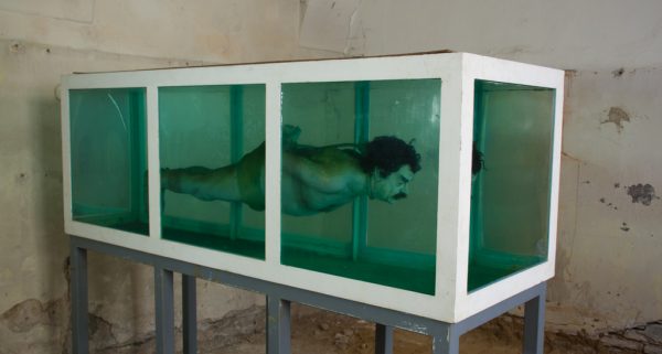 Παραπέμποντας στην τολμηρή εγκατάσταση του βρετανού καλλιτέχνη Ντέιμιεν Χιρστ «Η Φυσική Αδυναμία του Θανάτου στο Μυαλό Κάποιου που Ζει» ( 1991), με έναν καρχαρία που ουρλιάζει κρεμασμένος μέσα σε διάλυμα φορμαλδεΰδης, ο τσέχος καλλιτέχνης Ντέιβιντ Τσέρνι τόλμησε να βάλει μέσα σε μια βιτρίνα το ομοίωμα του έκπτωτου ιρακινού δικτάτορα Σαντάμ Χουσεΐν νε επιπλέει με δεμένα τα χέρια και τα πόδια μπροστά στους επισκέπτες.