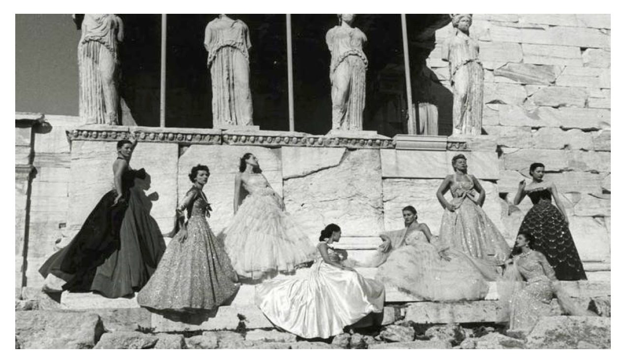 Σήμερα αυτές οι φωτογραφίες θεωρούνται από τις θρυλικές του οίκου μόδας. Ο Κριστιάν Ντιόρ κυριολεκτικά μεσουρανούσε τότε, είχε δώσει μια μοναδική ώθηση στη γαλλική μόδα καθιστώντας την κυρίαρχη και καθοριστική για την παγκόσμια σκηνή. Και ναι, τόλμησε να φωτογραφίσει τις δημιουργίες του δίπλα στο θαύμα της παγκόσμιας αρχιτεκτονικής και τέχνης, τον Παρθενώνα. Εβαλε τα μοντέλα του δίπλα στις Καρυάτιδες, επιχειρώντας να δημιουργήσει μια εικόνα που θα εγγραφεί στην αιωνιότητα, καταγράφοντας τη μετάβαση και ταυτόχρονα την πρωταρχική μορφή της γυναικείας φιγούρας.