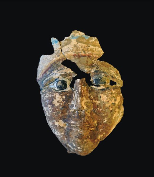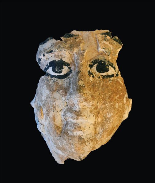 Μία από τις πρόσφατα ανακαλυφθείσες μάσκες βρέθηκε έξω από μια ελληνορωμαϊκή κατακόμβη που ανακαλύφθηκε το 2019. Κατασκευασμένη από πηλό, ήταν σφηνωμένη πάνω από ένα ανθρώπινο κρανίο και περιβαλλόταν από θραύσματα μιας γραμμωτής περούκας. «Το χρωματικό σχέδιο της περούκας τη χρονολογεί στην Υστερη και στην Πτολεμαϊκή Περίοδο, περίπου από το 713 έως το 30 π.Χ.» δήλωσε ο ιάπωνας επικεφαλής της αποστολής των αρχαιολόγων.