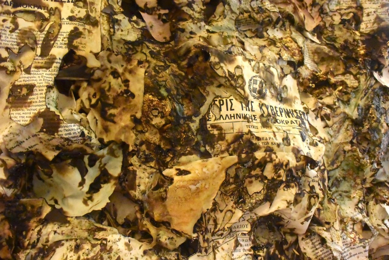 Η επιμελήτρια της έκθεσης Λουΐζα Καραπιδάκη σημειώνει σχετικά: «…Συλλαμβάνοντας τα παθήματα της ύλης και των υλικών, οι εικαστικοί επαναπροσδιορίζουν αισθητικά τα ασήμαντα αποτυπώματα της καθημερινής φθοράς και μετατρέπουν σε τέχνη τις απεικονίσεις των συσσωρευμένων αλλοιώσεων».