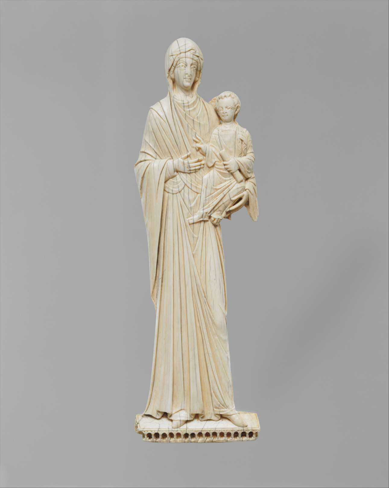 Ανάμεσά τους εκτίθενται και δύο από τις πιο παλιές γνωστές εικόνες: η μία είναι μια πολυτελής πολύχρωμη ταπισερί από την Αίγυπτο του 6ου αιώνα, που απεικονίζει μια ανέκφραστη Παναγία και το Θείο Βρέφος, πλαισιώνοι από αρχαγγέλους.
