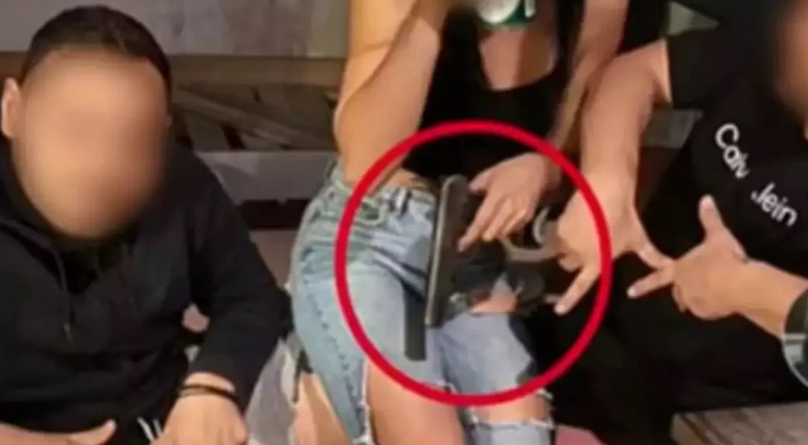 Σε φωτογραφία που παρουσίασε ο ΣΚΑΪ, μαζί με δύο από τους κακοποιούς -μέσα σε δωμάτιο της εστίας- ποζάρει και η δόκιμη αστυνομικός, κρατώντας ένα πιστόλι στο χέρι.