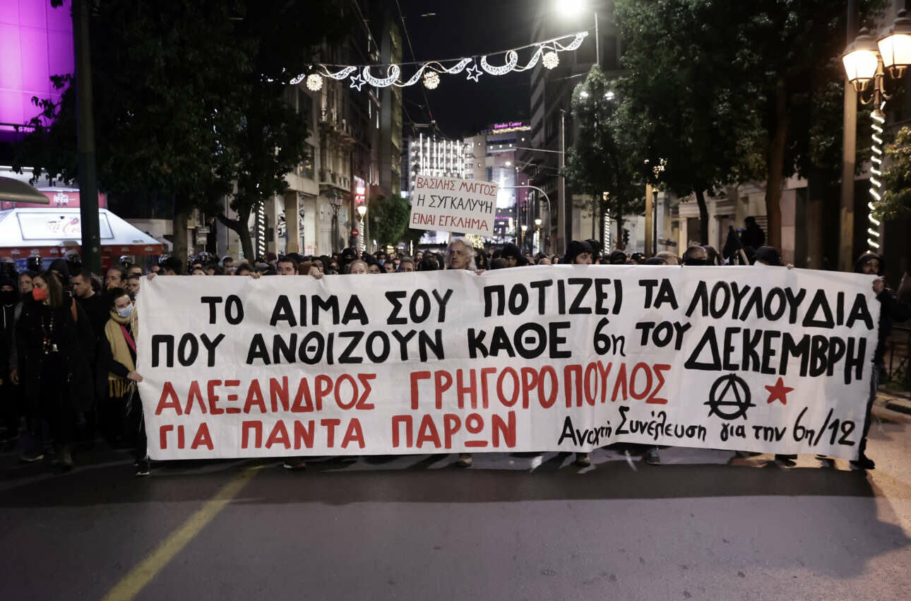 Με κεντρικό σύνθημα «το αίμα σου ποτίζει τα λουλούδια που ανθίζουν κάθε 6η Δεκέμβρη. Αλέξανδρος Γρηγορόπουλος για πάντα παρών» οργανώσεις και συλλογικότητες της Αριστεράς και του αντιεξουσιαστικού χώρου συγκεντρώθηκαν στα Προπύλαια το απόγευμα, ενώ η πορεία τους προς τη Βουλή ξεκίνησε λίγο πριν τις 19:00.