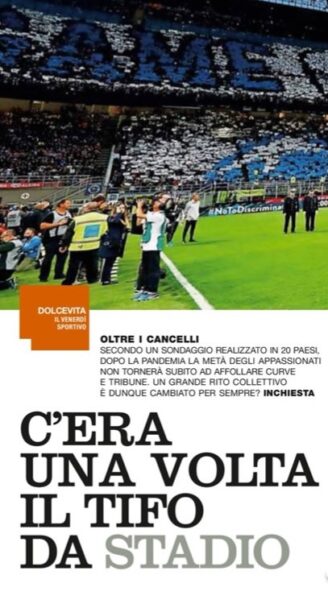 Στο περιοδικό Il Venerdì της Repubblica δημοσιεύτηκε κείμενο για τις άδειες κερκίδες των ιταλικών ποδοσφαιρικών γηπέδων. Ακριβώς επειδή μιλάει για ιταλικό ποδόσφαιρο, ο συντάκτης του (Φούλβιο Παλιαλούνγκα) αντιμετωπίζει την ερημιά των σταδίων ως σύμπτωμα του προϊόντος και μεταλλαγμένου κορονοϊού, και όχι ως αποτέλεσμα άλλων παραγόντων που σχετίζονται με την πραγματική κατάσταση της ιδιωτικής και κρατικής οικονομίας ή και με άλλες παθογένειες, κοινωνικές ή ποδοσφαιρικές. Στο κείμενο του προσπαθεί να μη θρηνήσει, ούτε όμως και να σκορπίσει υπέρμετρη αισιοδοξία ότι, μόλις ξεπαγώσει η συνολική ζωή από την ίωση, θα ξεπαγώσει και η μπάλα όπως τη γνωρίζαμε.