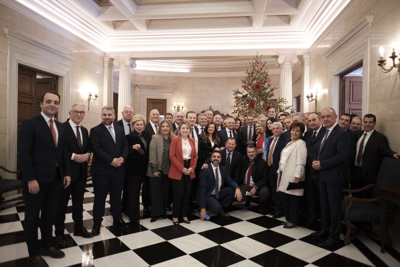 Πρώιμο χριστουγεννιάτικο ρεβεγιόν Μητσοτάκη: Οι βουλευτές της ΝΔ στη μεγάλη σάλα του Μαξίμου