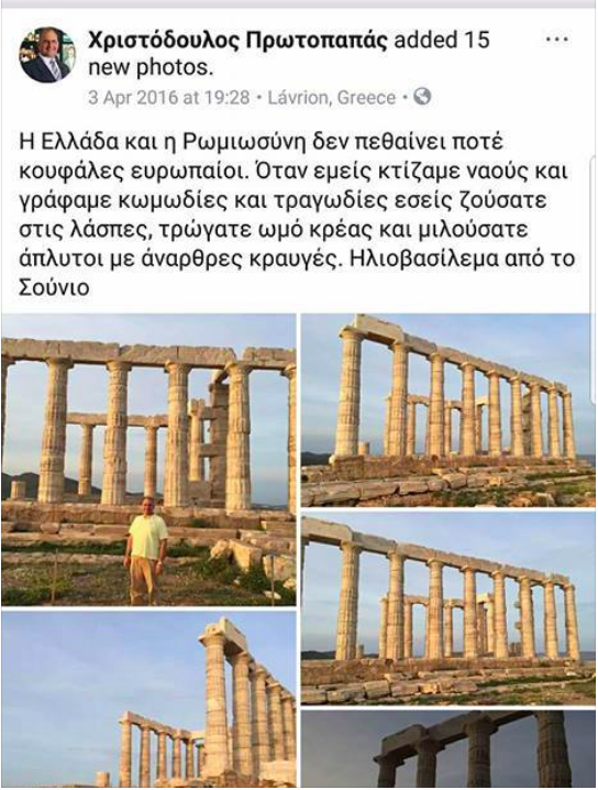 Δικαιολογούμενος για την έντονα πατριωτική ανάρτησή του (δείτε τη πάνω), ο κ. Πρωτοπαπάς υποστήριξε ότι παρασύρθηκε, καθώς -όπως είπε- «όλοι έβριζαν τότε» και για μία ακόμη φορά διερωτήθηκε πώς είναι δυνατόν να δέχεται τόσο μπούλινγκ επειδή «θαυμάζει τον ελληνικό πολιτισμό» (η αλήθεια πάντως είναι ότι επέλεξε έναν αν μη τι άλλο περίεργο τρόπο για εκφράσει τον θαυμασμό του).