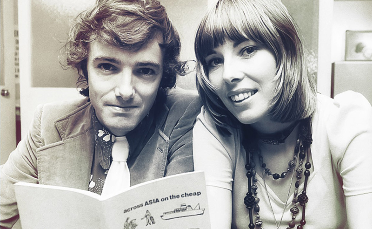 Φωτό: Ο Τόνι και η Μορίν Ουίλερ, κρατώντας τον πρώτο ταξιδιωτικό οδηγό τους, το 1973. Πηγή: lonelyplanet.com