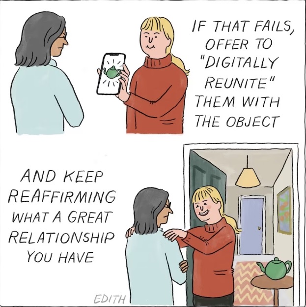 - «Εάν αυτή η τακτική δεν πετύχει, προσφερθείτε για μια ψηφιακή επανένωση του ιδίου με το δικό του αντικείμενο. Μπορεί να το βλέπει εφεξής στο Ιντερνετ».