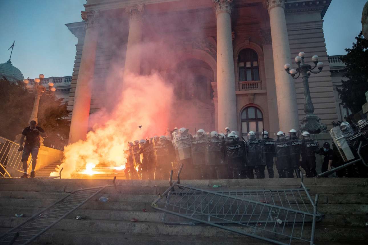 Χιλιάδες κόσμου στους δρόμους, δακρυγόνα, οδοφράγματα και εμπόδια, οργή για το πολιτικό σύστημα. Η εικόνα του πλήθους στη Σερβία που διαμαρτύρεται για την πολιτική κατά του κορονοϊού είναι πρωτοφανής, τουλάχιστον στην Ευρώπη, κατά την διάρκεια της πανδημίας.