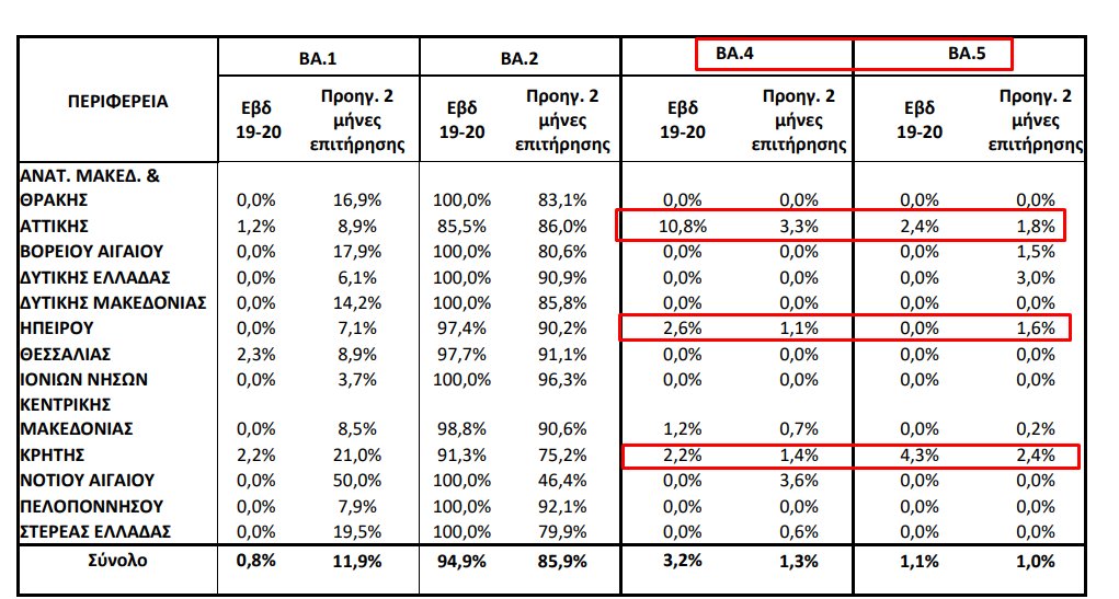 Παράλληλα τα δείγματα της Ομικρον 5, η οποία ευθύνεται για την επικείμενη επιστροφή του μέτρου της υποχρεωτικής μάσκας στην Πορτογαλία (εδώ), από το 1,8% έφτασαν σε μία εβδομάδα το στο 2,4%.