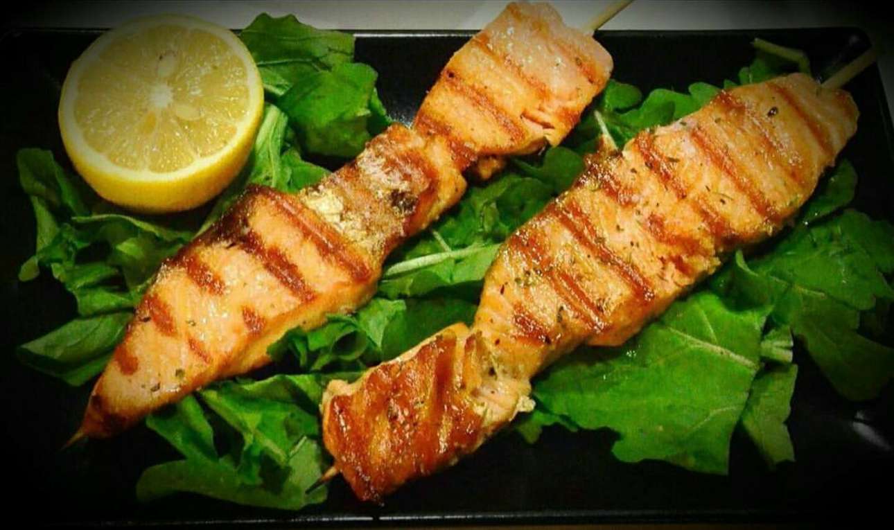 Καλαμάκι με φρέσκο σολομό στο Stick Βar της Πατριάρχου Ιωακείμ