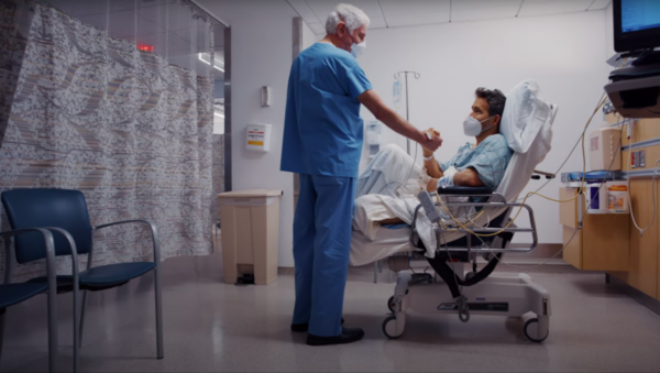 «Η ίδια η διαδικασία δεν διαρκεί πολύ. Μιλάμε για περίπου 30 λεπτά», είπε ένας γιατρός στον ηθοποιό καθώς τον πήγαινε με το καροτσάκι στην αίθουσα επέμβασης. «Και είναι εκπληκτικά αποτελεσματικό».