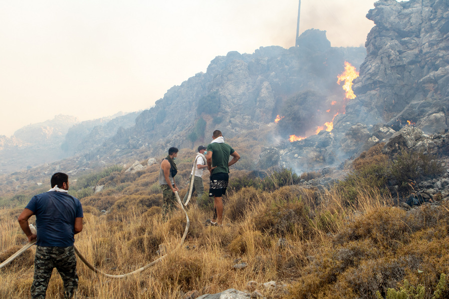 Με τον πύρινο εφιάλτη συνέχισαν να παλεύουν την Κυριακή οι επίγειες πυροσβεστικές δυνάμεις και οι εθελοντές στο νησί της Ρόδου καθώς η φωτιά συνέχιζε να μαίνεται ανεξέλεγκτη για έκτη ημέρα.
