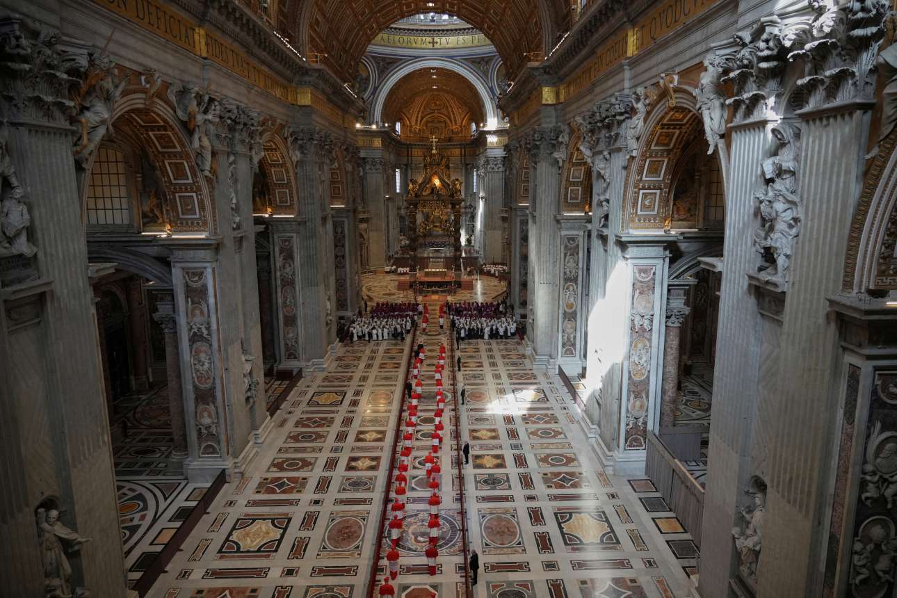 Το πρωί της Τετάρτης, μεταφέρθηκε, με όλες τις τιμές, το σκήνωμα του πάπα Φραγκίσκου στη Βασιλική του Αγίου Πέτρου, ενώπιον εκατοντάδων καρδιναλίων και χιλιάδων πιστών, που συγκεντρώθηκαν από νωρίς στην εμβληματική πλατεία της Ρώμης.