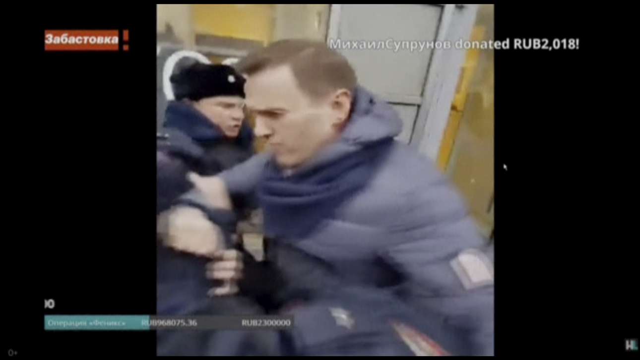 Παρά την αντίσταση που προέβαλαν οι οπαδοί του, ο Αλεξέι Ναβάλνι οδηγήθηκε δια της βίας σε μια κλούβα από κρανοφόρους αστυνομικούς, οι οποίοι τον έριξαν στο έδαφος.