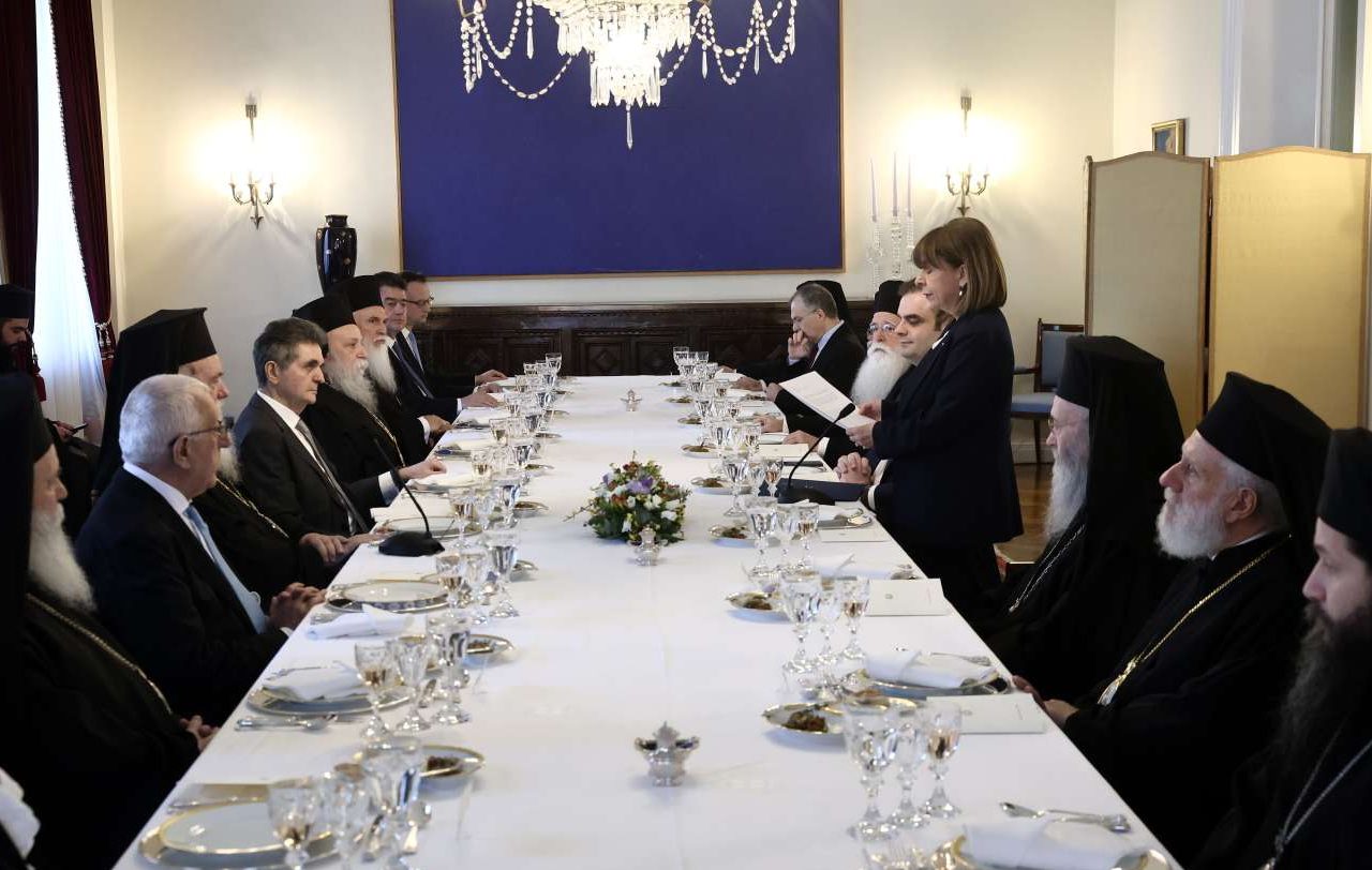 »Σε αυτήν την ευφρόσυνη συγκυρία, στη σπουδαία εορτή της Ορθοδοξίας μας, η παρούσα συνεστίαση επισφραγίζει, για ακόμη μία φορά, τον αμοιβαίο σεβασμό και την αγαστή συμπόρευση Εκκλησίας και Πολιτείας. Μέσα από την καρδιά μου, εύχομαι σε εσάς και στους σεβασμιώτατους μητροπολίτες δύναμη και διαύγεια στην επιτέλεση του υψηλού σας έργου», κατέληξε η κυρία Σακελλαροπούλου.