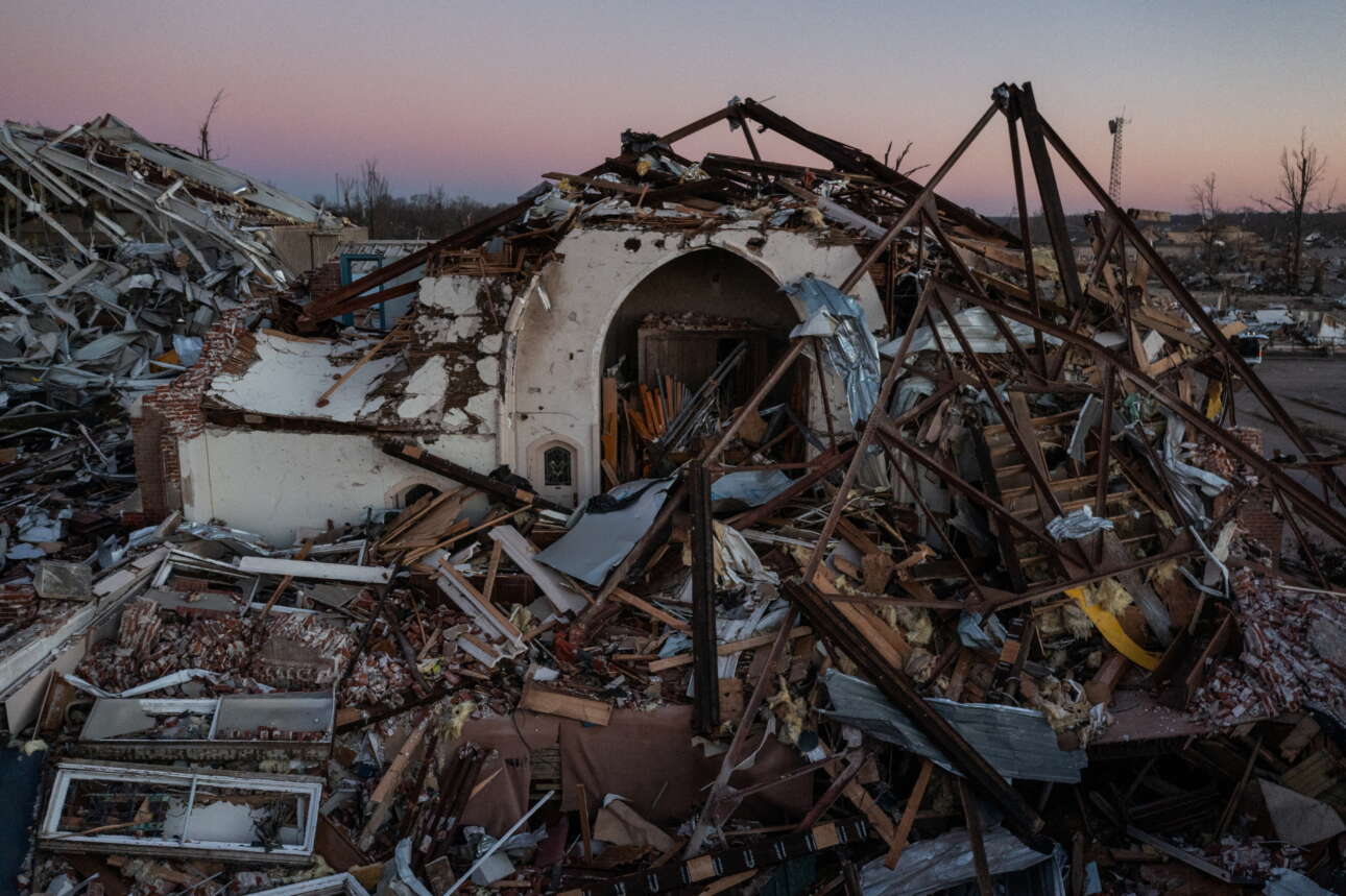 Στο Κεντάκι, η μικρή πόλη Μέιφιλντ επλήγη σφοδρά από τον ανεμοστρόβιλο, ιδίως μια βιοτεχνία κατασκευής κεριών που ισοπεδώθηκε. Εκεί οι Αρχές φοβούνται πως ο απολογισμός θα είναι πολύ βαρύς.