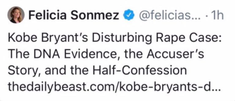 Την Κυριακή το απόγευμα, μετά το τραγικό δυστύχημα και ενώ ακόμη δεν είχαν ξεκαθαρίσει οι λεπτομέρειες για τη συντριβή, η Φελίσια Σόνμες ανήρτησε στο Twitter ένα σύνδεσμο προς παλιότερο άρθρο του ιστότοπου Daily Beast.