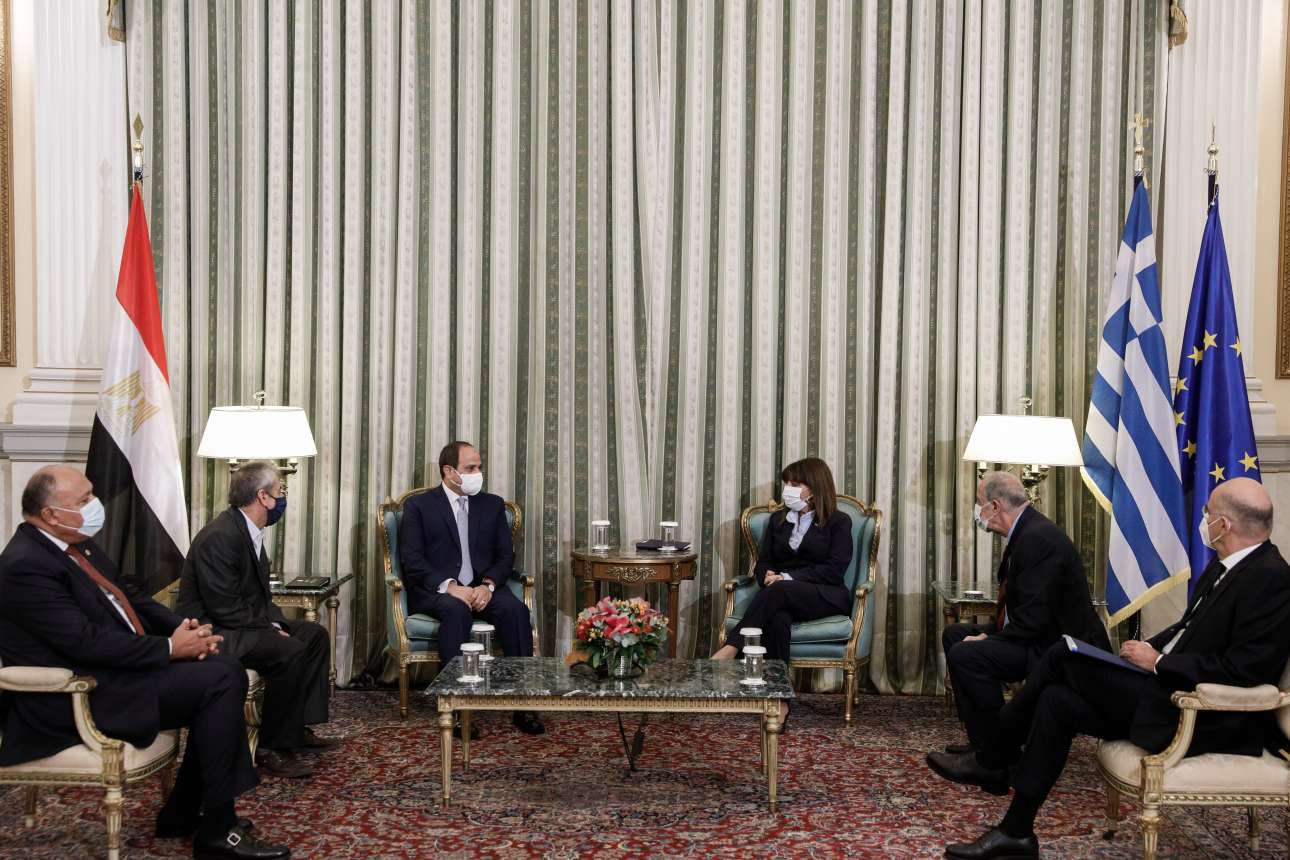 Δεκτός από την Πρόεδρο της Δημοκρατίας, Κατερίνα Σακελλαροπούλου, στο Προεδρικό Μέγαρο, και από τον Πρωθυπουργό Κυριάκο Μητσοτάκη, στο Μέγαρο Μαξίμου, έγινε το πρωί της Τετάρτης ο πρόεδρος της Αιγύπτου Αμπντέλ Φατάχ αλ Σίσι, στην πρώτη του επίσκεψη στην Αθήνα μετά την υπογραφή της πολύ σημαντικής συμφωνίας οριοθέτησης Αποκλειστικής Οικονομικής Ζώνης μεταξύ των δύο χωρών τον περασμένο Αύγουστο.