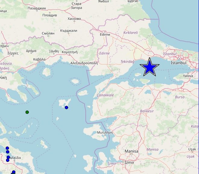 Σεισμός μεγέθους 5,7 της κλίμακας Ρίχτερ έπληξε την Κωνσταντινούπολη στις 2 το μεσημέρι της Πέμπτης, σύμφωνα με το σεισμολογικό παρατηρητήριο του Καντιλί.