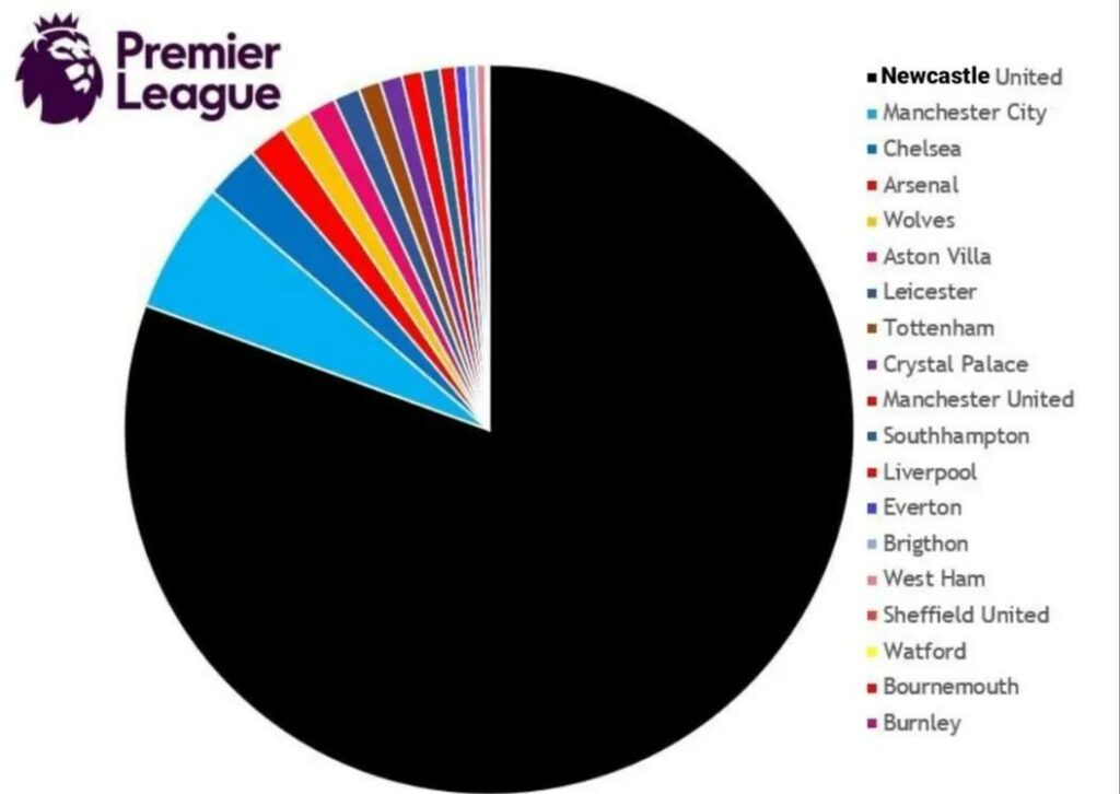 Οπως μπορεί να διαπιστώσει λοιπόν κανείς στη σχετική… πίτα του πλούτου, η Νιούκαστλ θα έχει χαοτικά μεγαλύτερο κομμάτι ακόμα και από συλλόγους με γνωστή οικονομική επιφάνεια ή επίσης βαθύπλουτους ιδιοκτήτες.
