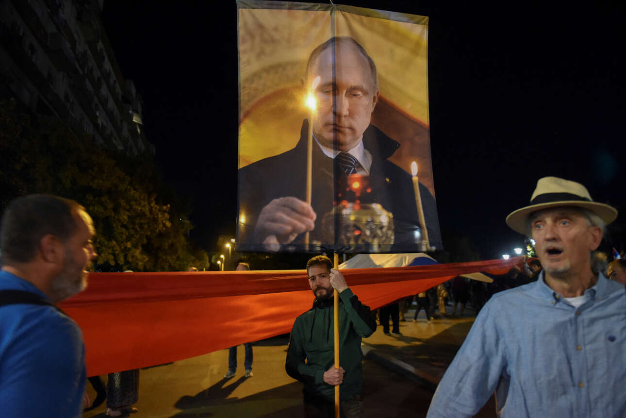 Στις φωτογραφίες που έδωσαν στη δημοσιότητα τα διεθνή πρακτορεία φαίνονται αρκετοί Σέρβοι διαδηλωτές να κρατούν εικόνες του ρώσου προέδρου Βλαντίμιρ Πούτιν ή να φορούν μπλούζες με το γράμμα «Ζ» που χρησιμοποιεί ο ρωσικός στρατός από την εισβολή του στην Ουκρανία.