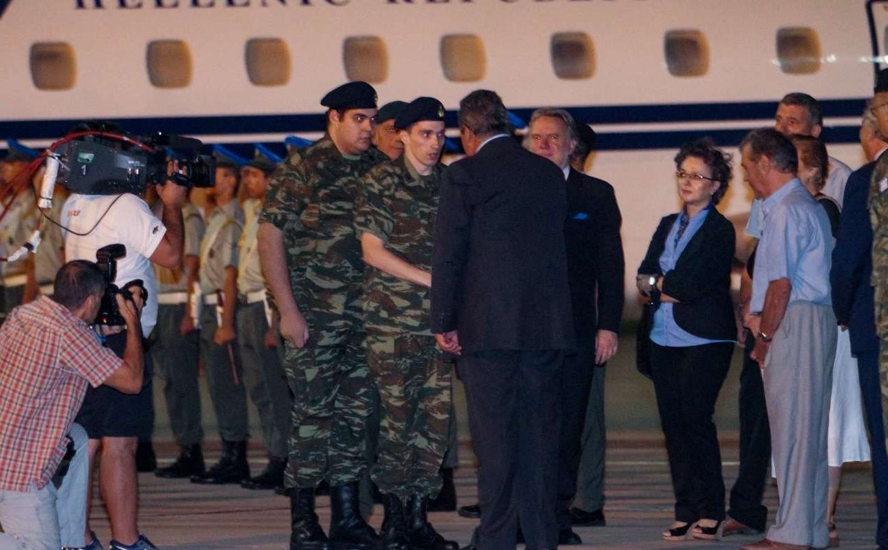 Πέρα πάντως από τις δηλώσεις των πολιτικών ιδιαίτερα συγκινητικές ήταν οι στιγμές όταν οι δύο στρατιωτικοί έπεσαν στις αγκαλιές των οικείων τους που επίσης τους περίμεναν ξημερώματα στην πίστα του «Μακεδονία».