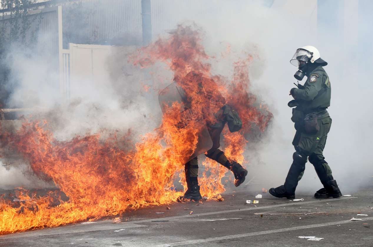 Mέσα λίγα λεπτά, και ενώ ο κόσμος είχε ήδη αρχίσει να αποχωρεί, ομάδες κουκουλοφόρων, οργανωμένα, άρχισαν να πετούν πέτρες και βόμβες μολότοφ, μετατρέποντας τον χώρο στην οδό Αμαλίας έξω από τη Βουλή σε εμπόλεμη ζώνη.