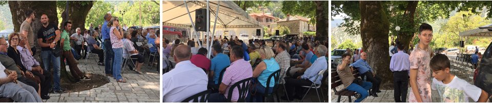 Τη Δευτέρα το πρωί στη μεγάλη πλατεία των Αγράφων κάνει ζέστη. Για διπλή προστασία από τον ήλιο κάτω από τα φυλλώματα των πλατάνων έχει στηθεί μια τεράστια τέντα που χωράει στη σκιά της κάπου 300 καρέκλες. Η λαϊκή συνέλευση είναι μαραθώνια. Διαρκεί πάνω από έξι ώρες χωρίς διάλλειμα. Μπορεί όμως κανείς να σηκωθεί και να περπατήσει στην πλατεία για να ξεμουδιάσει, ενώ στα τραπέζια οι διοργανωτές έχουν φροντίσει να υπάρχουν σνακ και δροσερό νερό. Μετά του χαιρετισμούς ο Δήμαρχος και δημότες που ζητούν το λόγο μιλάνε με πάθος για τις ανάγκες τους, ο αντιπεριφερειάρχης Ευρυτανίας κύριος Αρης Τασσιός περιγράφει αναλυτικά τα έργα που έχουν προγραμματιστεί για την περιοχή των Αγράφων. Στη συνέχεια θα ακολουθήσουν τα ζητήματα τα ημερήσιας διάταξης.
