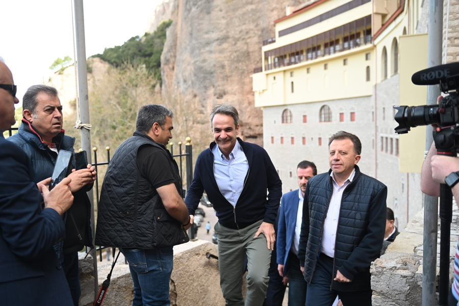 Ο πρωθυπουργός Κυριάκος Μητσοτάκης επισκέπτεται το Μέγα Σπήλαιο, κατά την διάρκεια της επίσκεψής του στα Καλάβρυτα, Τρίτη 2 Απριλίου 2024 /ΑΠΕ-ΜΠΕ/ΓΙΩΤΑ ΛΟΤΣΑΡΗ