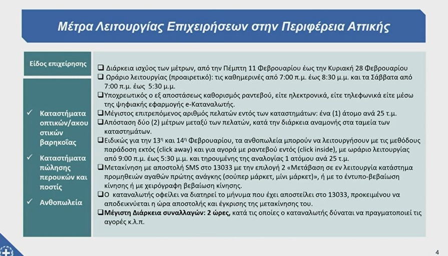 Ειδικά για τα ανθοπωλεία, θα παραμείνουν ανοιχτά λόγω Αγίου Βαλεντίνου στις 13 και 14 Φεβρουαρίου.