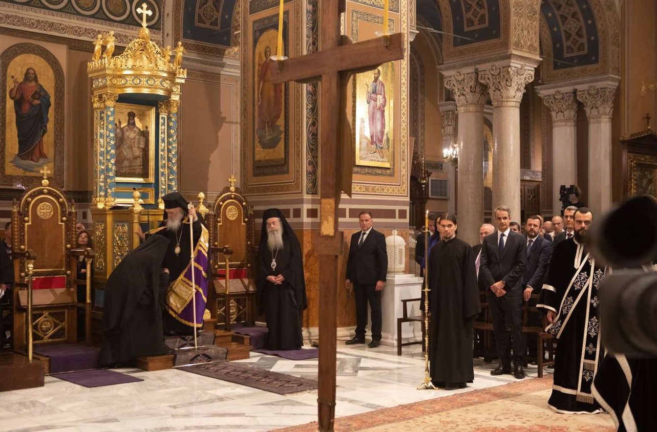 Πέρα από το κατανυκτικό κλίμα, το τελετουργικό προσέφερε μια ευκαιρία να διαπιστωθεί η άριστη σχέση του Πρωθυπουργού με τον προκαθήμενο της Εκκλησίας —ένας πάγος που έλιωσε το τελευταίο διάστημα μετά και την κοινή τους παρουσία στο Δήλεσι πριν από δέκα ημέρες. Στο περιθώριο, εξάλλου, της τελετής στην Ιερά Μητρόπολη Αθηνών, ο κ. Μητσοτάκης και ο κ. Ιερώνυμος είχαν ένα σύντομο τετ α τετ.