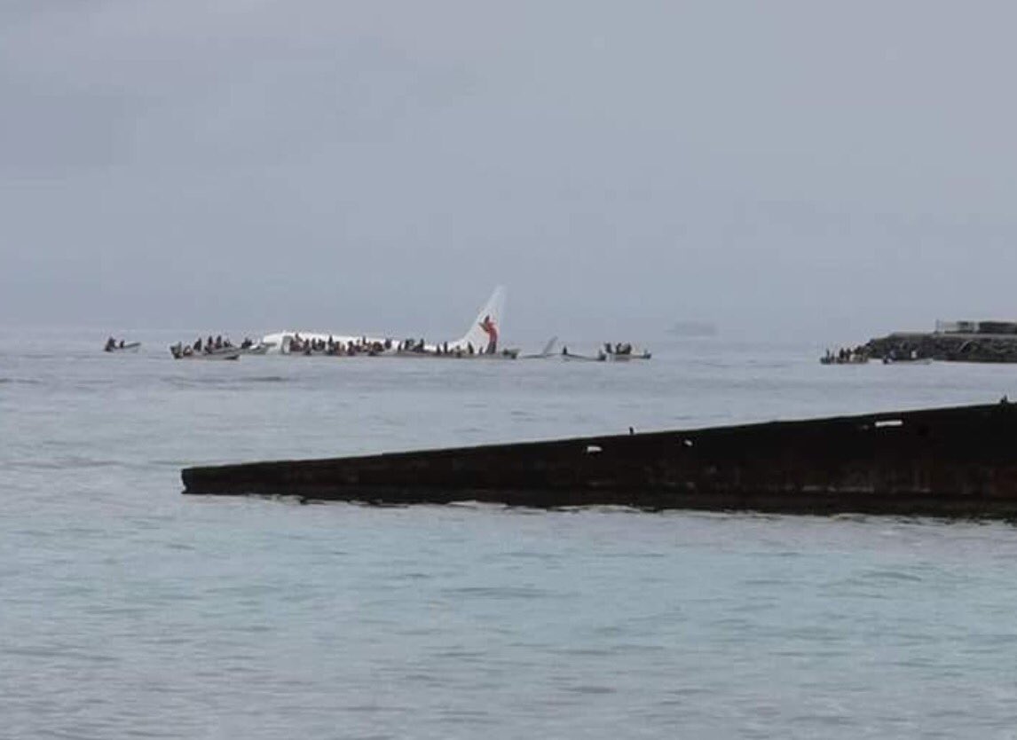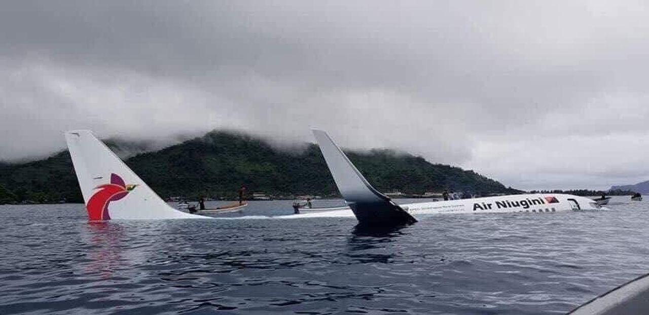 Το Boeing 737-800 της Air Niugini ήταν έτοιμη να προσγειωθεί στο Τσούουκ της Μικρονησίας, αλλά βγήκε εκτός διαδρόμου και κατέληξε να μισοβυθιστεί στα νερά μιας λιμνοθάλασσας.