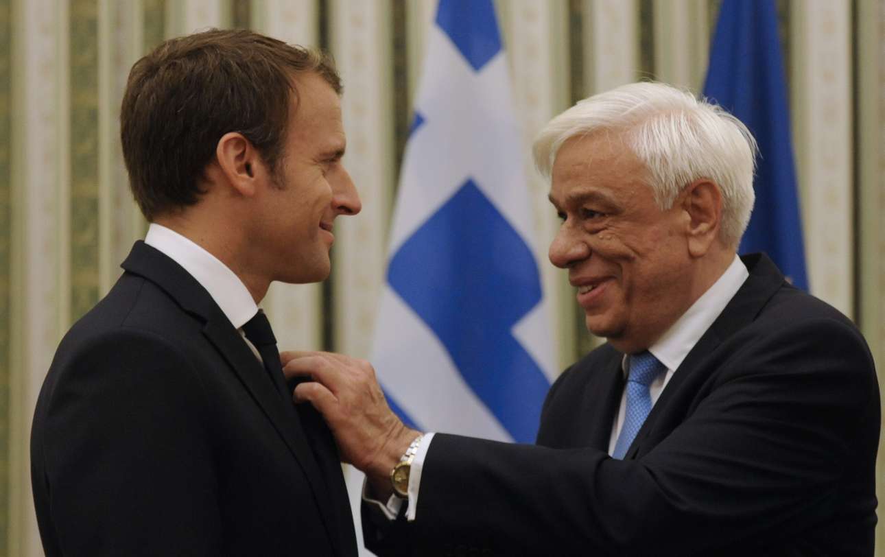 Ο πρόεδρος της Γαλλίας παρασημοφορήθηκε με το Παράσημο του Μεγαλόσταυρου του Σωτήρος, από τον Προκόπη Παυλόπουλο. «Σας απονέμω την ανώτατη διάκριση του ελληνικού κράτους ως αναγνώριση όλων εκείνων τα οποία, είμαι βέβαιος, θα πράξετε τόσο για τη συνέχιση των εξαιρετικών σχέσεων των δύο χωρών μας, όσο και για τη διασφάλιση (mettre «en marche») της ευρωπαϊκής ολοκλήρωσης» είπε ο κ. Παυλόπουλος, χρησιμοποιώντας τη φράση «mettre en marche» – ένα λογοπαίγνιο με το κίνημα του Μακρόν.