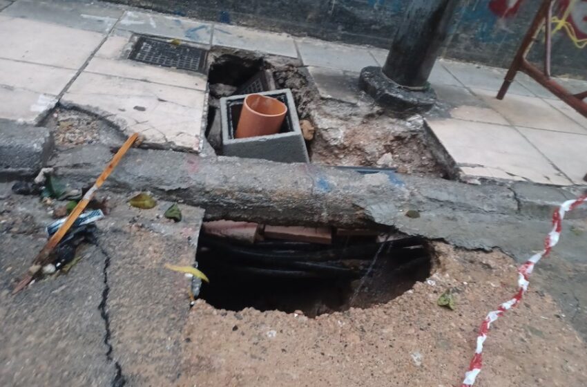 Νωρίτερα, η Χαριλάου Τρικούπη είχε κλείσει για την κυκλοφορία των οχημάτων από το ύψος της Ναυαρίνου, λόγω καθίζησης του οδοστρώματος / Twitter