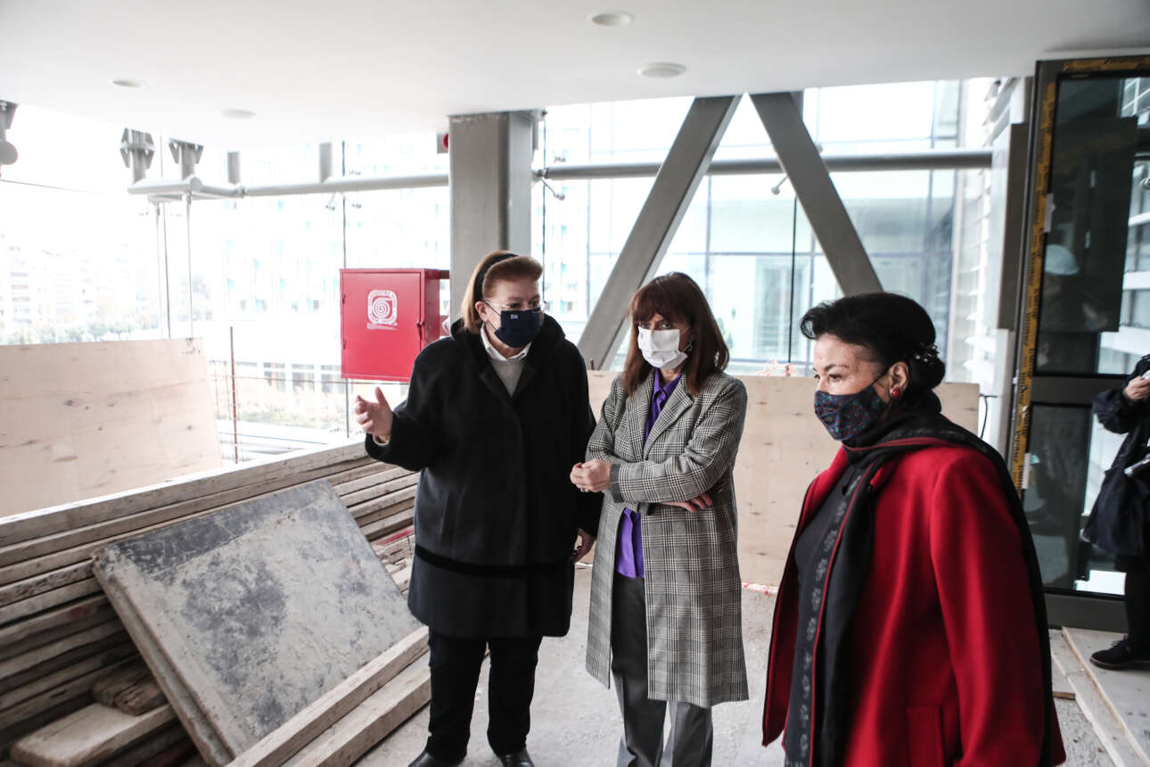 Την πορεία των έργων για την επέκταση της Εθνικής Πινακοθήκης είχε την ευκαιρία να δει η Πρόεδρος της Δημοκρατίας Κατερίνα Σακελλαροπούλου, η οποία ξεναγήθηκε στο εργοτάξιο από την υπουργό Πολιτισμού Λίνα Μενδώνη.
