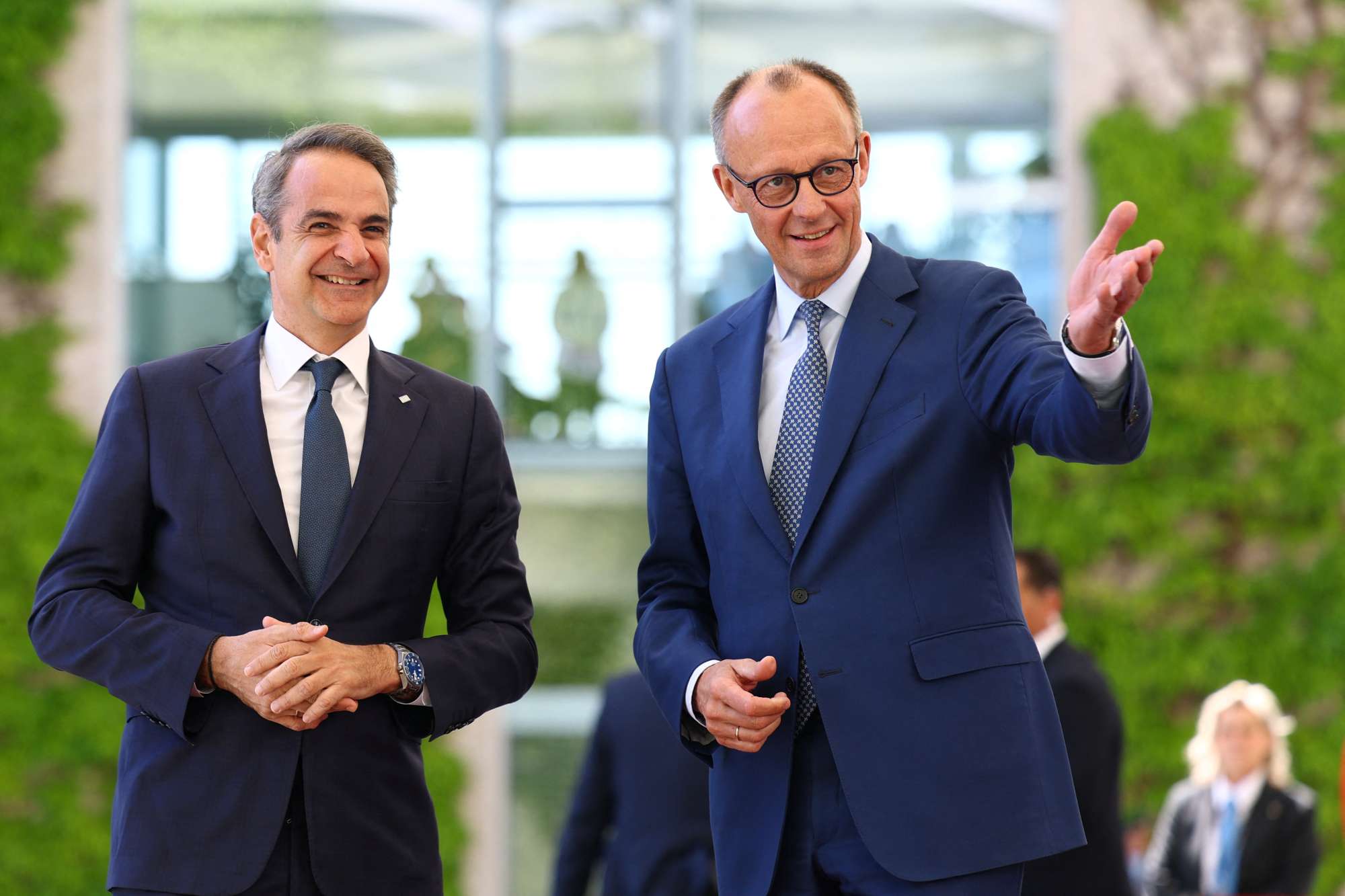 Ο Πρωθυπουργός έφθασε στην έδρα της Καγκελαρίας για τη συνάντησή του με τον Φρίντριχ Μερτς -στο δεύτερο διαδοχικό τετ α τετ με ευρωπαίο ηγέτη το τελευταίο 48ωρο μετά από εκείνο της Ρώμης, με την ιταλίδα ομόλογό του, Τζόρτζια Μελόνι (περισσότερα εδώ)- λίγο μετά τις 13.00 (δείτε το βίντεο κάτω από την ανταποκρίτρια του ΑΠΕ-ΜΠΕ Φαίη Καραβίτη).