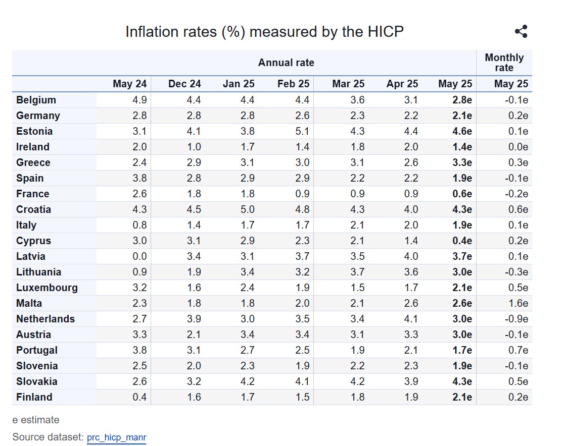 Σημειώνεται ότι τον Απρίλιο ο πληθωρισμός στην Ελλάδα βρίσκονταν στο 2,6%. Στην ευρωζώνη, εκτιμάται ότι υποχώρησε στο 1,9% ετησίως, χαμηλότερα από τον στόχο του 2% που έχει η Ευρωπαϊκή Κεντρική Τράπεζα, ενώ τον Απρίλιο ήταν στο 2,2%.