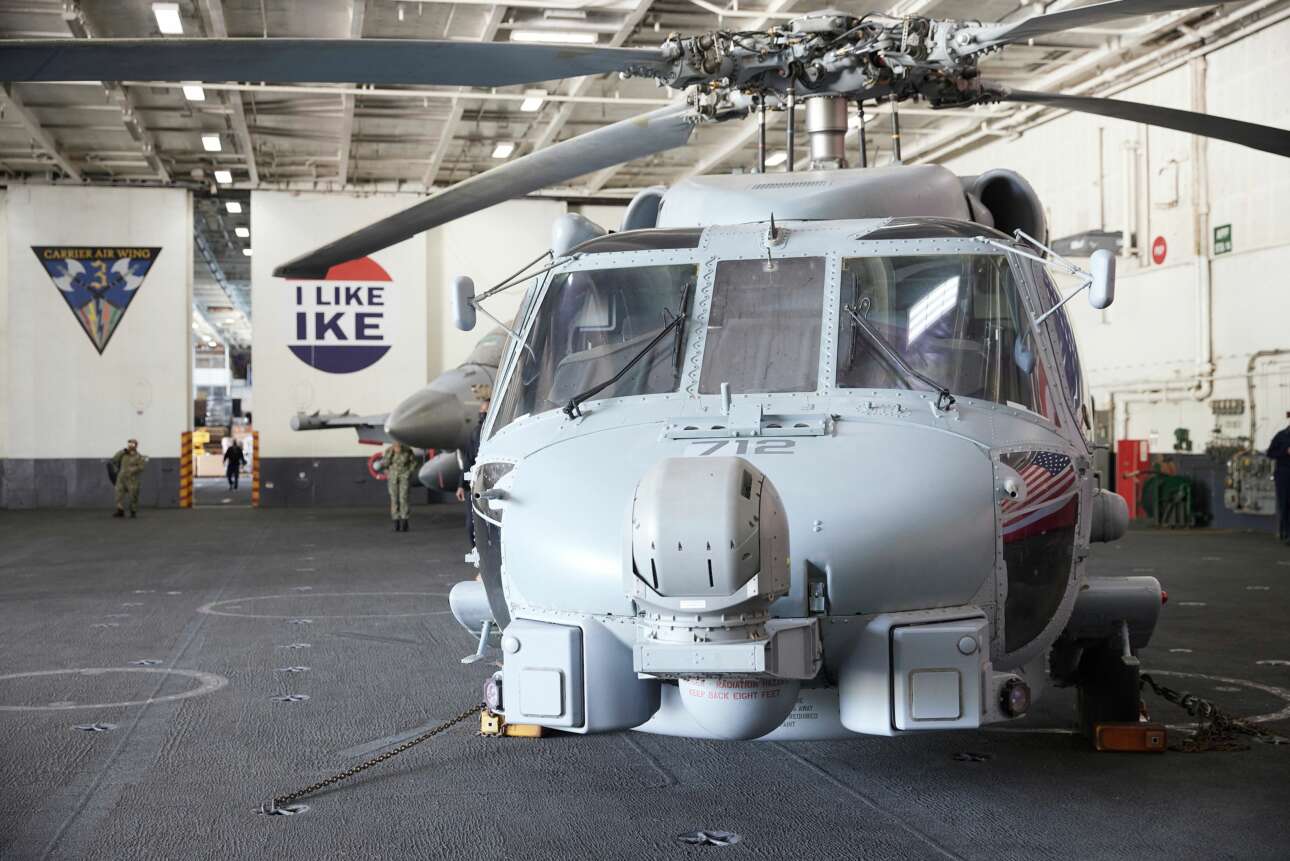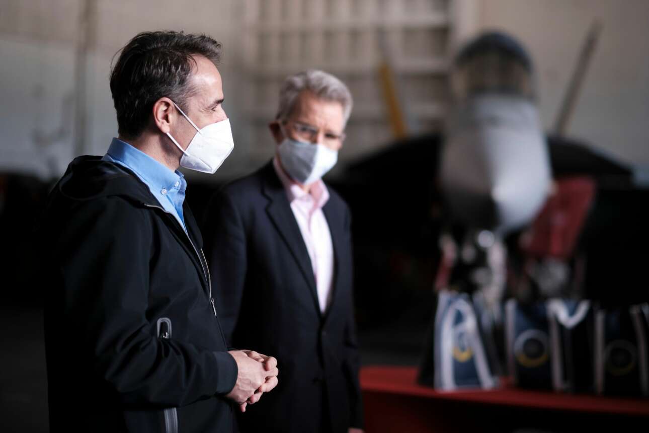 Ο Κυριάκος Μητσοτάκης αρχικά επισκέφθηκε υπόστεγο όπου φυλάσσεται ελικόπτερο MH-60R «Romeo», ένα από τα πλέον σύγχρονα ελικόπτερα του αμερικανικού Ναυτικού.