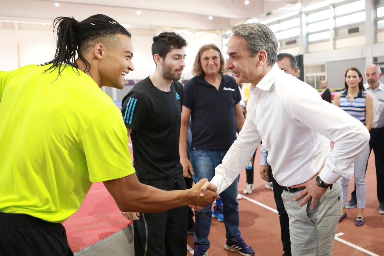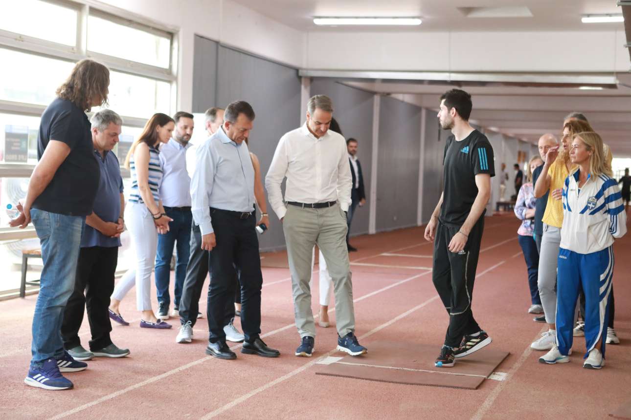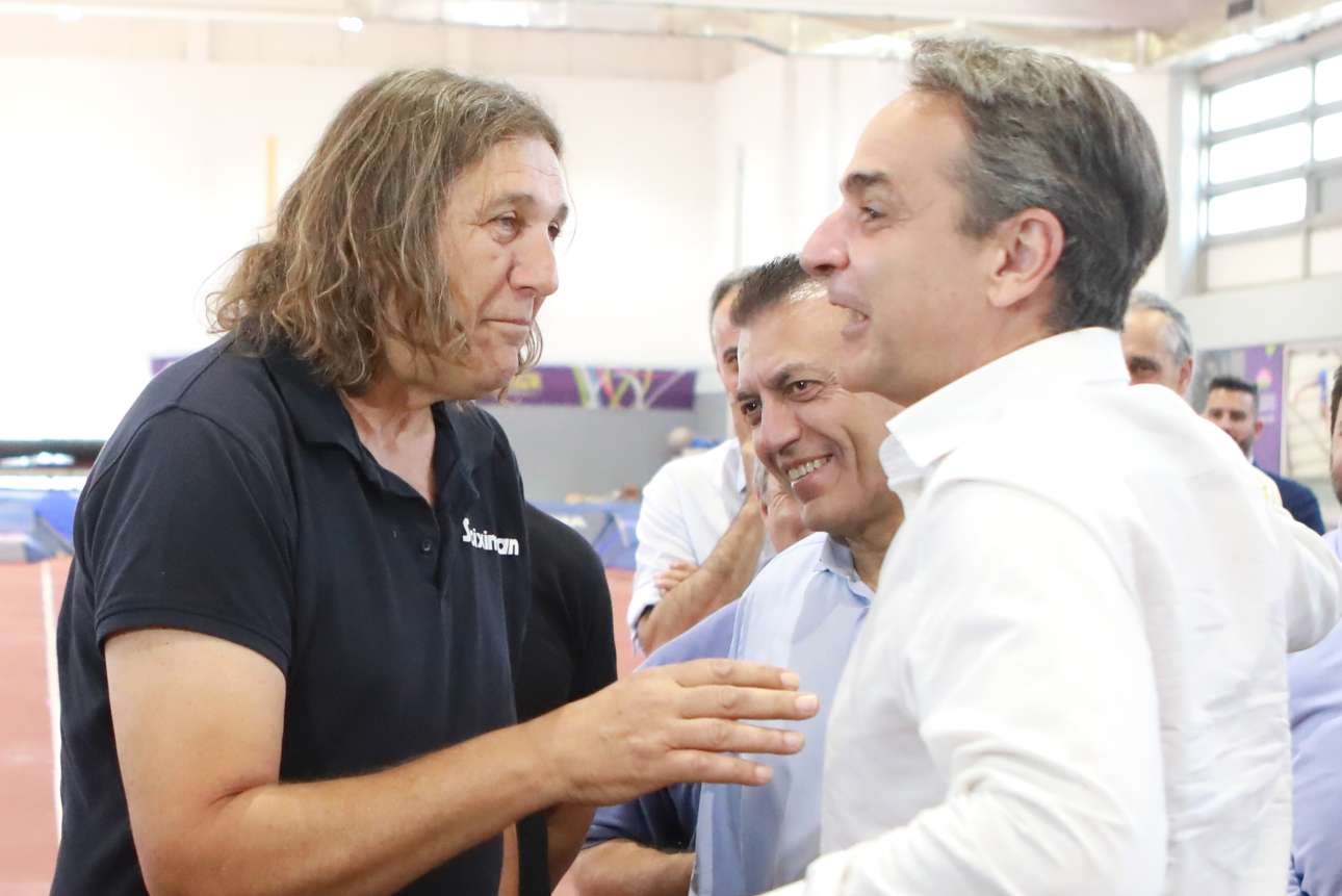 Κατά τη διάρκεια της επίσκεψης, ο κ. Μητσοτάκης τα είπε και με αθλητές που προετοιμάζονται για τους Ολυμπιακούς και Παραολυμπιακούς Αγώνες του Παρισιού και τους προπονητές τους – ανάμεσα τους και ο πολυνίκης προπονητής Γιώργος Πομάσκι (μαζί στις φωτογραφίες κάτω).