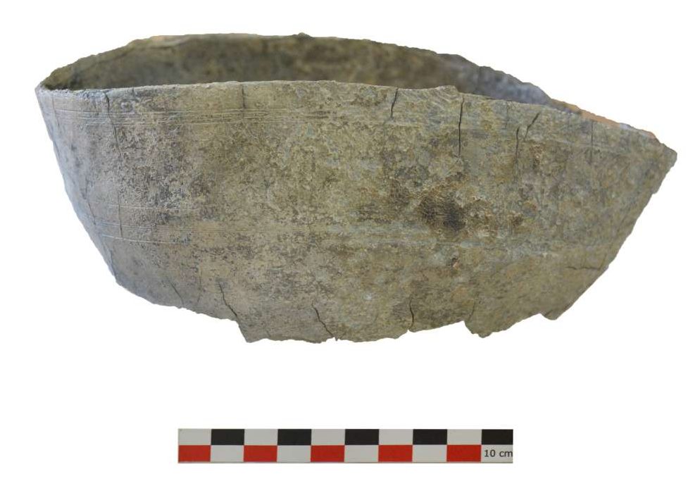 Κάτω από το διαταραγμένο δάπεδο της αψίδας ήλθε στο φως στρώμα θραυσμένων πρωτοβυζαντινών αγγείων: κοντόχοντρες χύτρες με καρινωτό περίγραμμα που προκαταρκτικά χρονολογούνται μάλλον στον 5ο αι., χωνοειδές στόμιο σφαιρικού αμφορέα τύπου Late Roman Amphora 2, αλλά κυρίως πληθώρα θραυσμάτων από το σώμα κυλινδρικών αμφορέων τύπου Late Roman Amphora 1 με αυλακωτή διακόσμηση που χρονολογούνται κυρίως στον 6ο αιώνα και ως τις αρχές του 7ου , και φαίνεται να οριοθετούν το terminus ante quem της οικοδόμησης της βασιλικής. Κάτω από το στρώμα αυτό και στον διαμήκη άξονα του ναού, αποκαλύφθηκε μικρό ορθογωνικό λάξευμα στον φυσικό βράχο με την μορφή θήκης με καλυπτήρια πλάκα. Πρόκειται προφανώς για το εγκαίνιο του ναού, αφού στο εσωτερικό του αποκαλύφθηκε μολύβδινο σωληνωτό αντικείμενο με περιεχόμενο που τώρα ερευνάται. Η βασιλική βρίσκεται εν λειτουργία τουλάχιστον έως τον 7ο αιώνα, χωρίς να μπορεί να αποκλειστεί και οψιμότερη χρήση της.