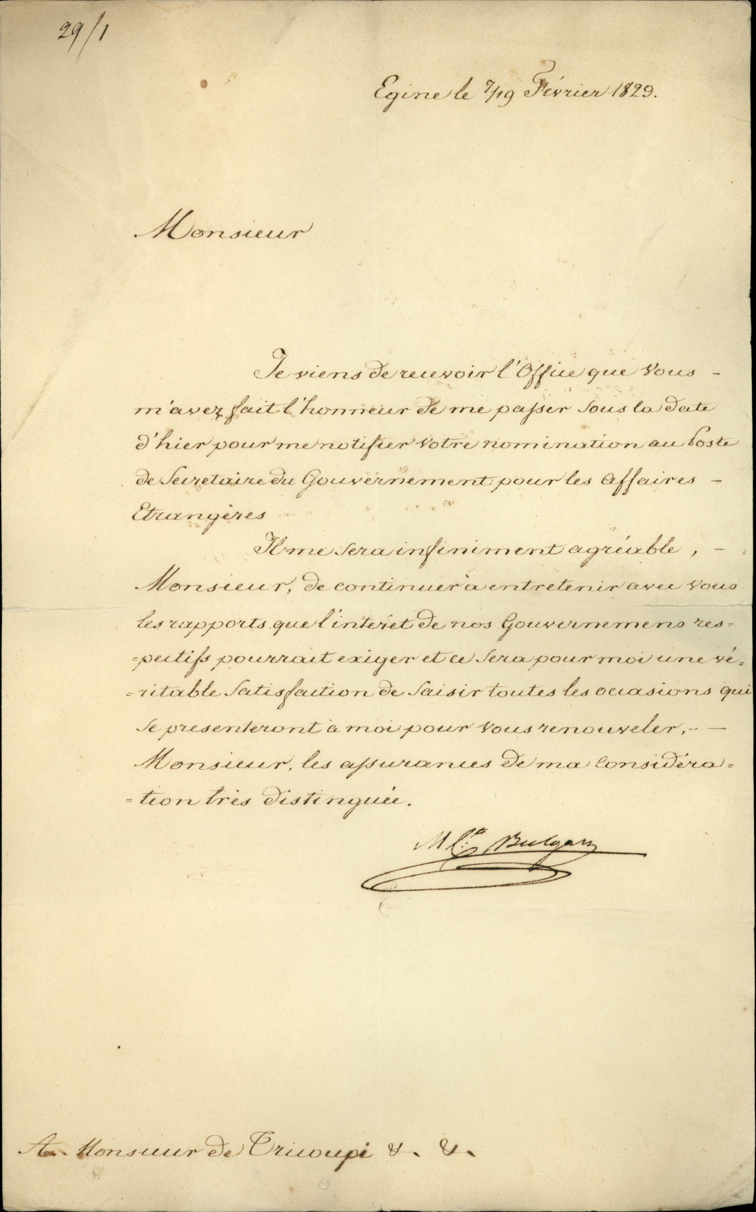 Δεν είναι εύκολη η σταχυολόγηση εγγράφων: όλα τα έγγραφα είναι σημαντικά. Εντύπωση όμως, σε κάθε περίπτωση, προκαλεί το αντίγραφο του Πρωτοκόλλου του Λονδίνου, τον Φεβρουάριο του 1830, η πρώτη επίσημη διεθνής πράξη, με την οποία αναγνωρίστηκε η Ελλάδα ως πλήρως ανεξάρτητο κράτος. Το βασικό Πρωτόκολλο της Ανεξαρτησίας, όπως επιδόθηκε στην Υψηλή Πύλη από τους Πρεσβευτές των Μεγάλων Δυνάμεων στις 8 Απριλίου 1830. Τα εδάφη του κράτους μειώθηκαν σε σχέση με το Πρωτόκολλο του 1829 και ορίζονταν από τους ποταμούς Αχελώο στα δυτικά και Σπερχειό στα ανατολικά, ενώ περιλαμβάνονταν οι Σποράδες και η Εύβοια. Σε άλλο Πρωτόκολλο της ίδιας ημέρας, προβλεπόταν ως Ηγεμόνας της Ελλάδας ο Πρίγκιπας Λεοπόλδος του Saxe-Coburg!
